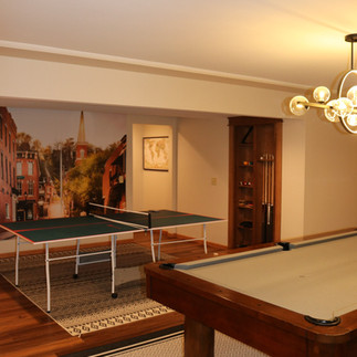 The Hideaway is situated in the woods with an outdoor fire pit and hot tub. We were able to park our mid-sized SUV in the garage during our stay. The basement also has a secret room behind the pool table supplies!